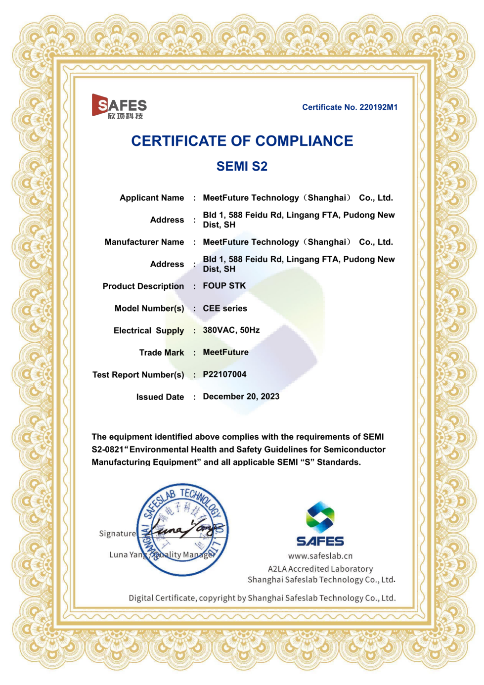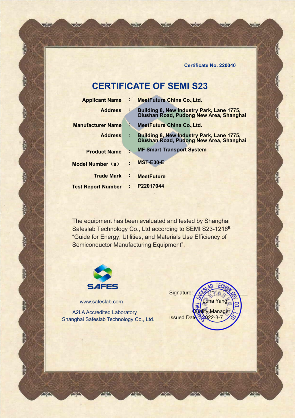 自 2018 年以来,九州酷游 ku游科技取得了国际标准化组织(ISO)质量管理体系(ISO 9001)、环境管理体系(ISO 14001)和职业健康安全管理体系(ISO 45001)认证。在AMHS产品技术体系领域,我们遵循半导体设备标准通讯协议,包括SEMI E37、 E82、E30、 E84、E10 等,使其易接入半导体晶圆厂MES系统来实现数据交互。